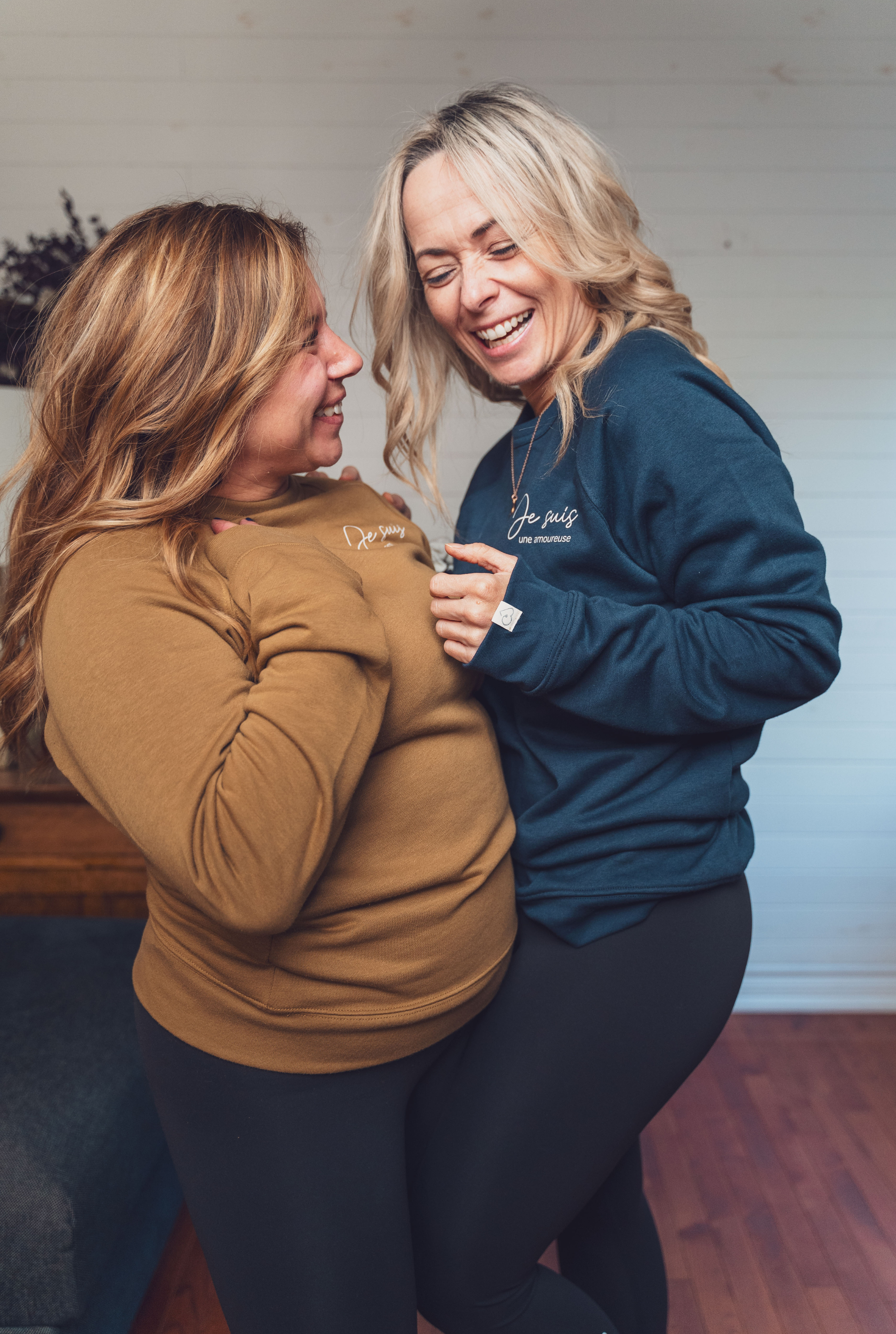 Le "Éliane" est un crewneck unisexe, mais basé sur des grandeurs pour hommes. Il est donc fait plus grand qu'un crewneck pour femmes.