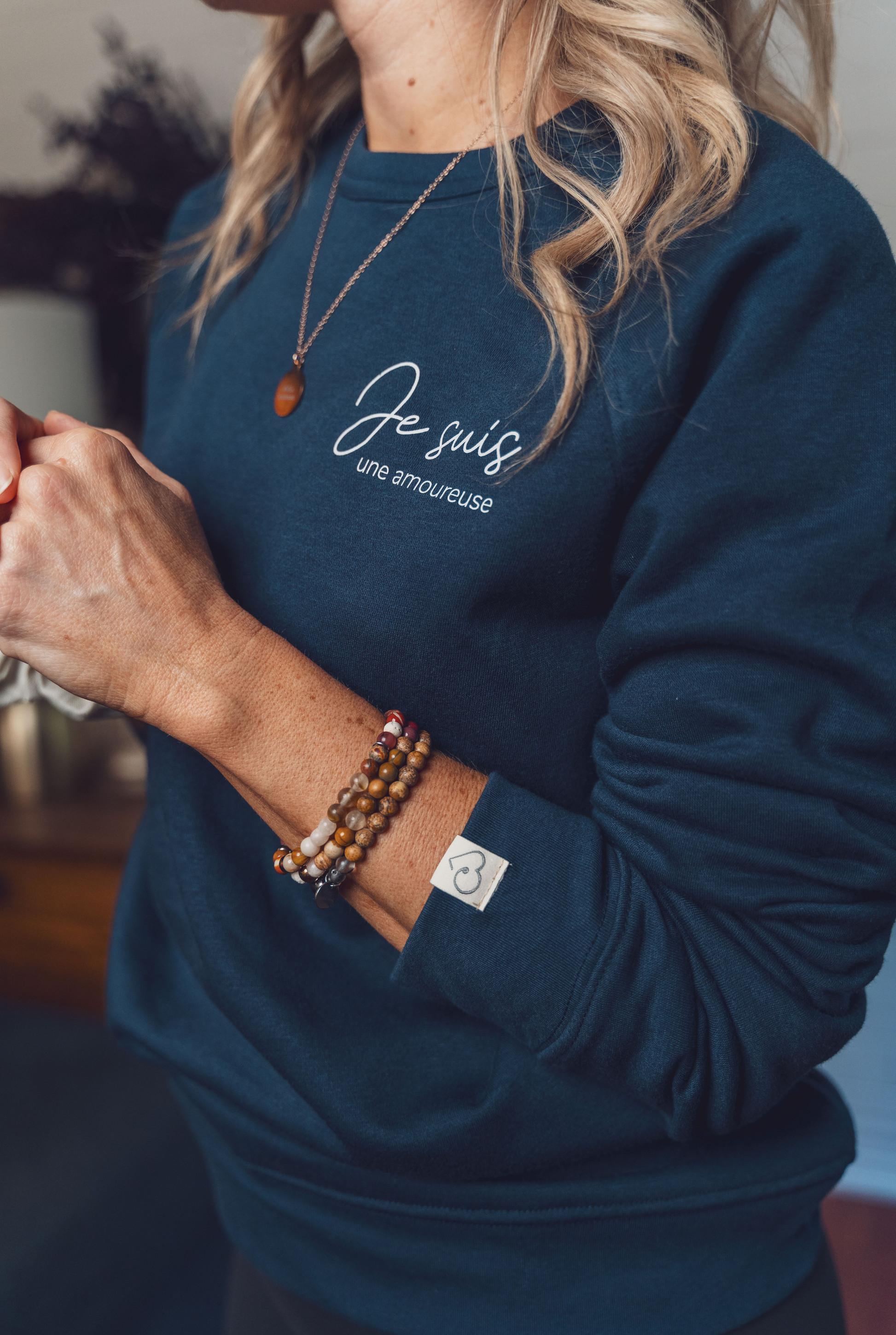 Un style décontracté et réconfortant, le crewneck "Éliane" est inspirant par l'emplacement discret de l'icône, du logo et de la mention "Je suis une amoureuse" au niveau du coeur. Un clin d'oeil pour te rappeler l'essentiel.