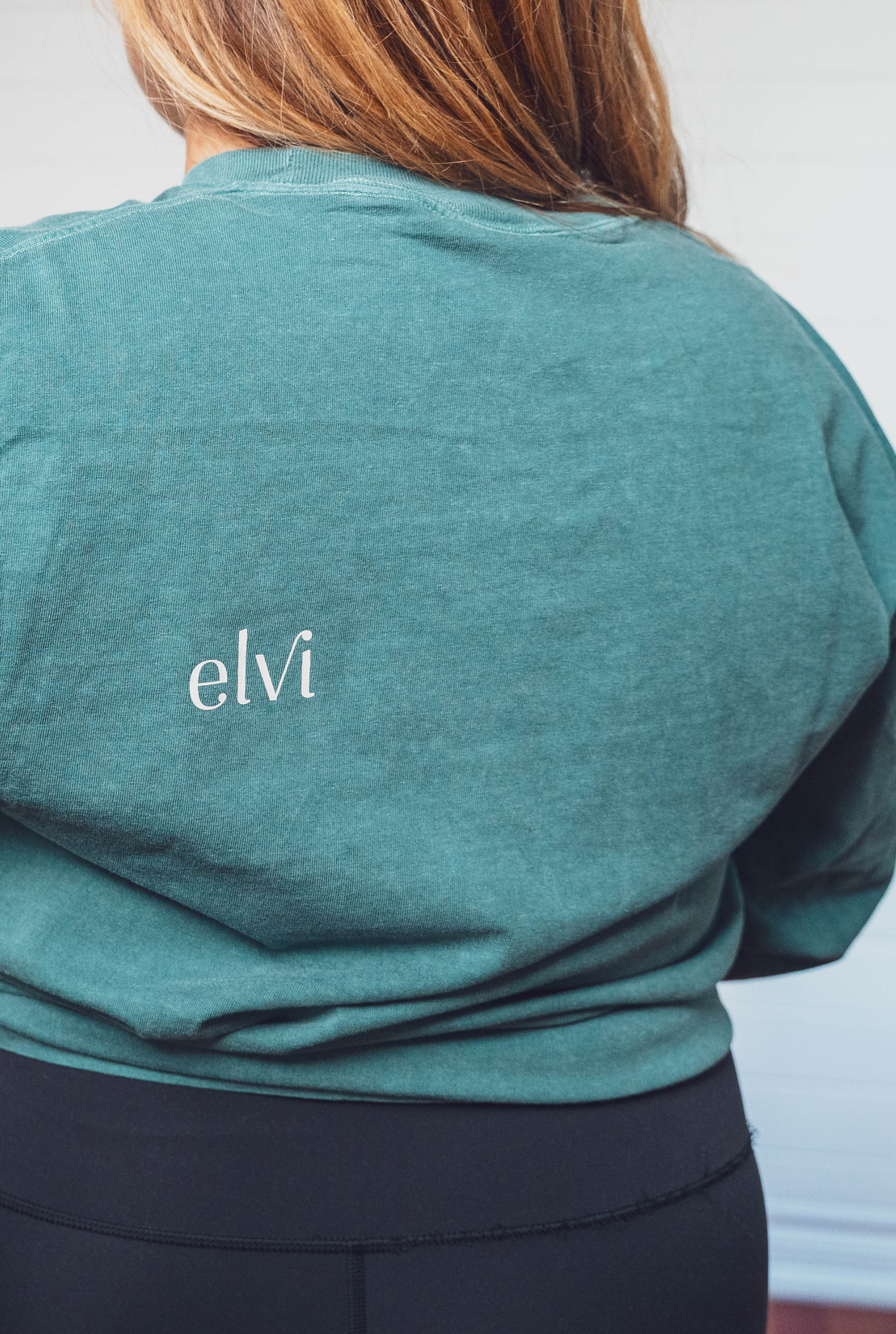 Son design épuré met en valeur les détails qui font toute la différence — l’icône elvi au cœur, symbole d’ancrage et d’expression de soi, le logo discret sur l’omoplate, et le mantra “moi. maintenant.” sur l’avant-bras, comme un doux rappel à vivre pleinement l’instant.